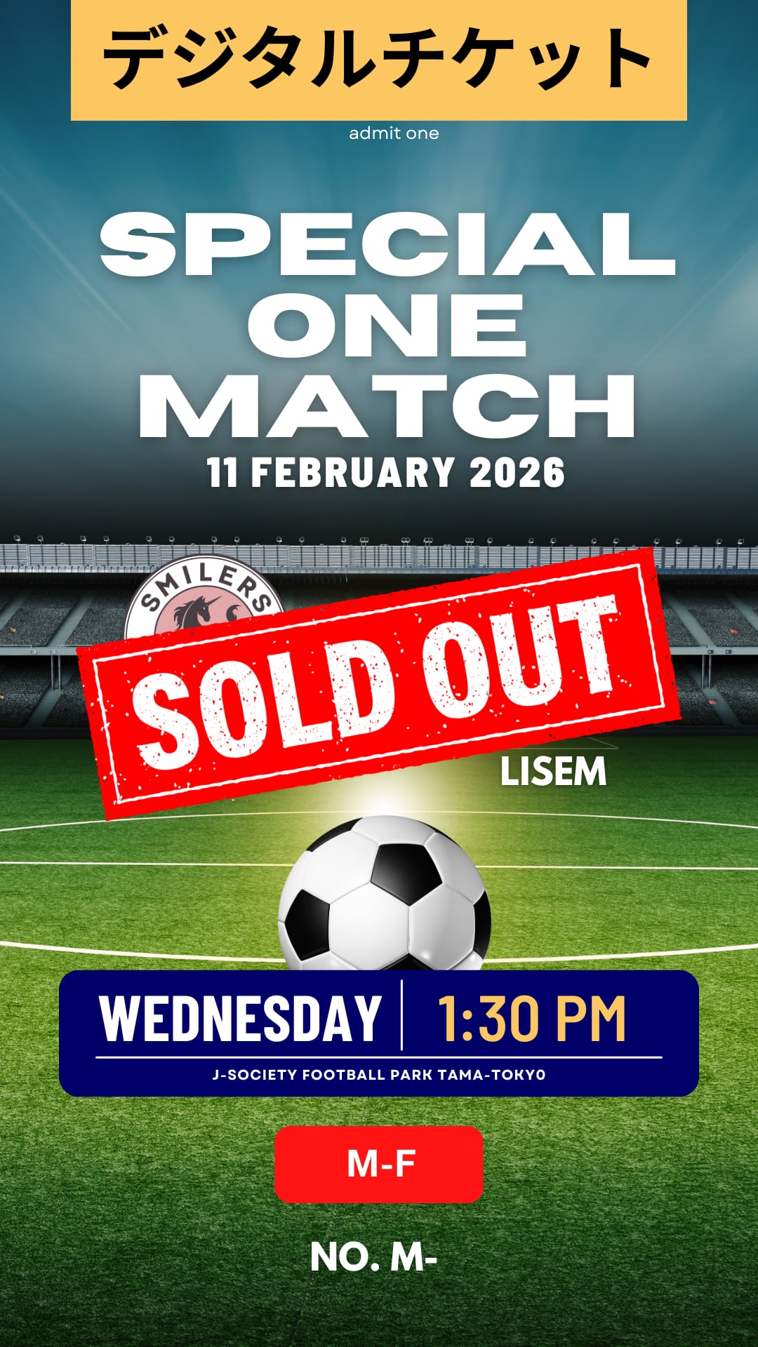 いつもSMILERSへの温かい応援をありがとうございます! 最強のサッカーインフルエンサー「LISEM」とのスペシャルワンマッチを開催します。 皆さんの熱い応援で、会場を盛り上げましょう!